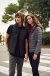 A modern jacket with down-like padding. Detachable hood and 3 exterior pockets with zippers and 2 interior pockets. Earphone loop in the neck